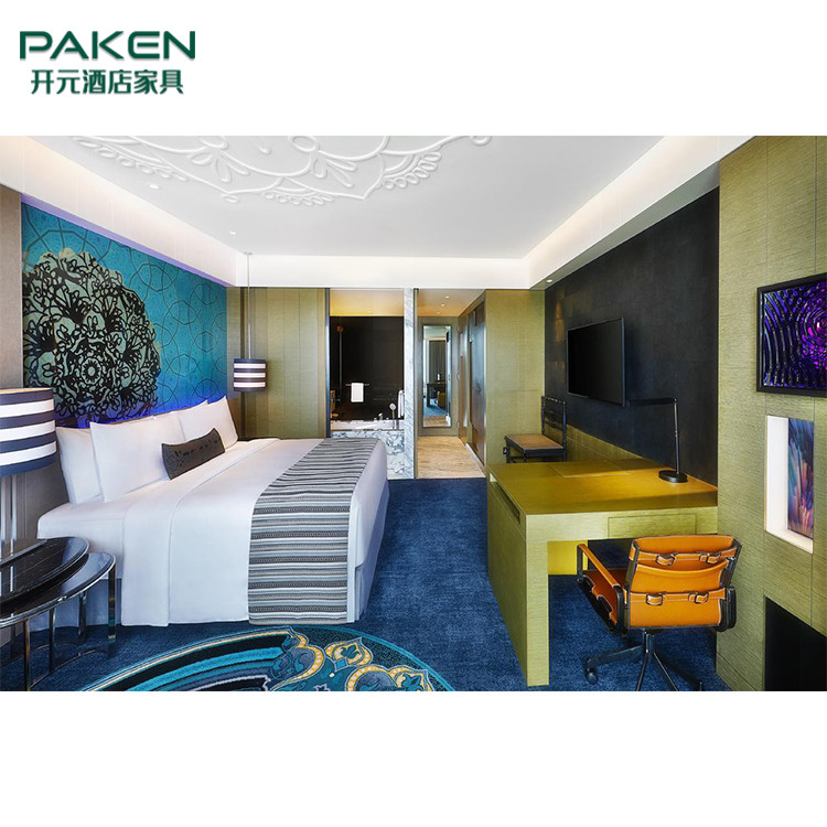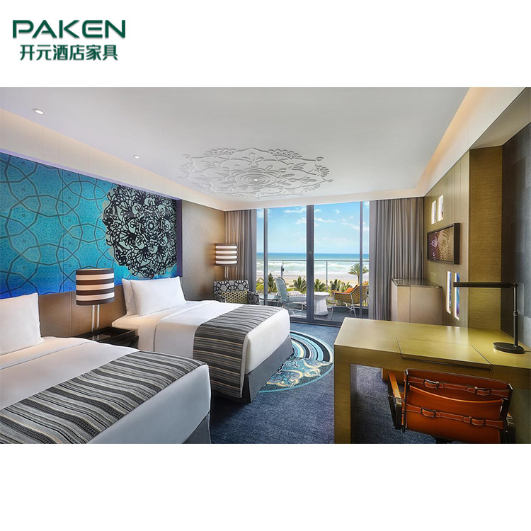 ठोस लकड़ी प्राकृतिक लिबास बेडरूम सेट के साथ अनुकूलित आधुनिक होटल फर्नीचर
