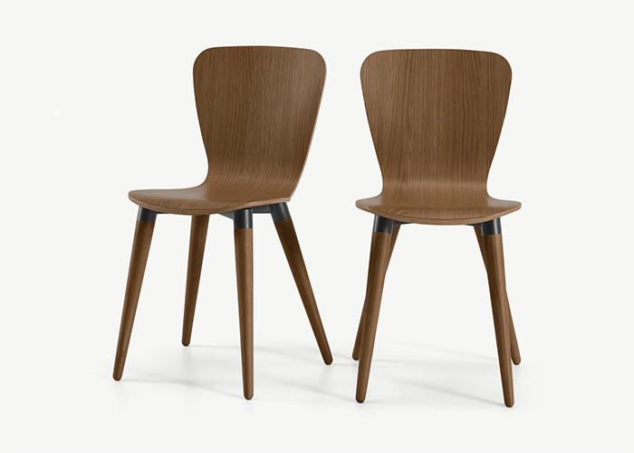 2 डाइनिंग कुर्सियों के इस सेट के लिए अखरोट और काली धातु एक विजेता संयोजन है।
